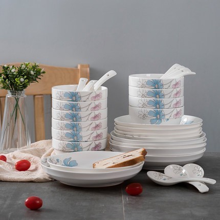 陶瓷餐具,陶瓷的传统概念是指所有以粘土等无机非金属矿物为原料的人工工业产品。它包括由粘土或含有粘土的混合物经混炼,成形,煅烧而制成的各种制品。陶瓷餐具的烧制和应用在我国有着悠久的历史,其造型多样、色彩斑斓、手感清凉细滑,容易洗涤,深受国人喜爱。陶瓷餐具的制作方法分为釉上彩、釉下彩、釉中彩三种。陶瓷餐具主要生产于江西景德镇、山东淄博、河北唐山、福建德化、广东潮州、湖南醴陵。陶瓷餐具我们可以分为镁质瓷餐具、镁质强化瓷餐具、强化瓷餐具、贝质瓷餐具、色釉瓷餐具、雅光瓷。